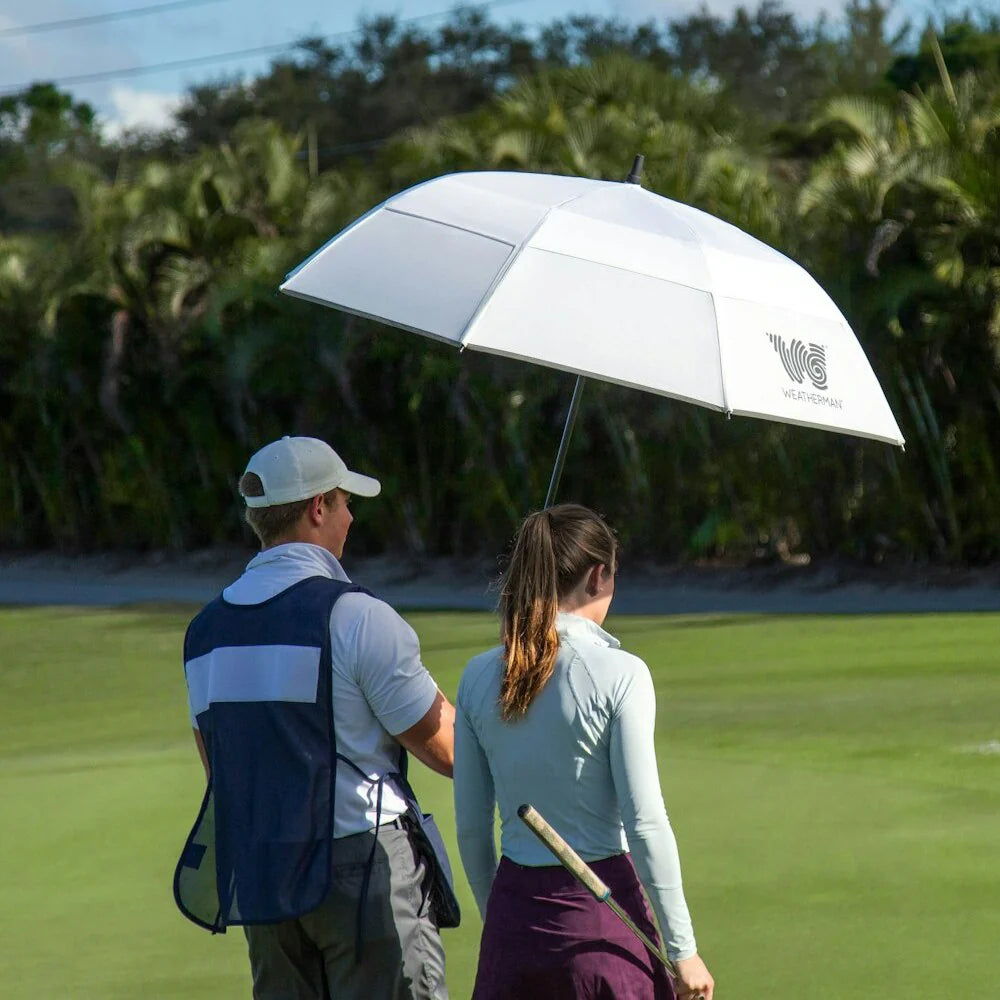 Combining lightweight construction with wind-proof technology and UV protection, this umbrella is built to perform on and off the green.